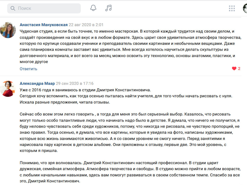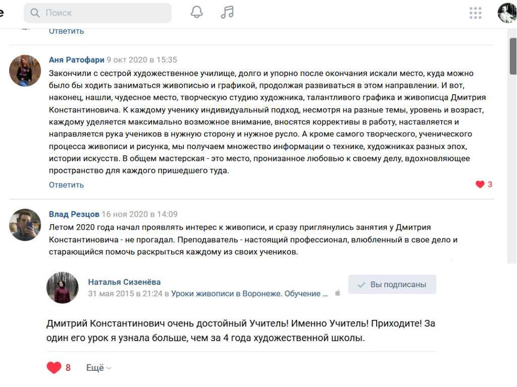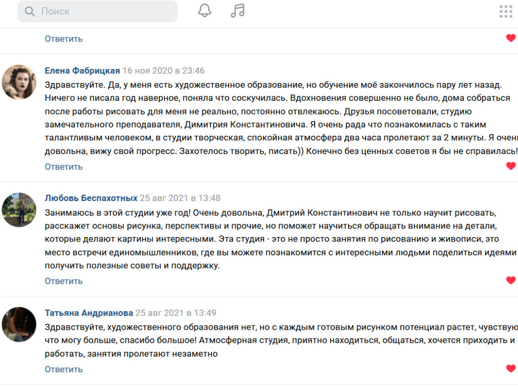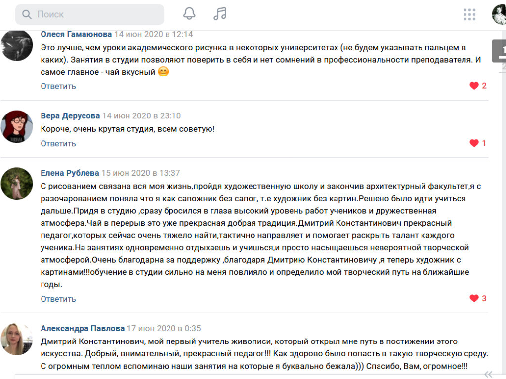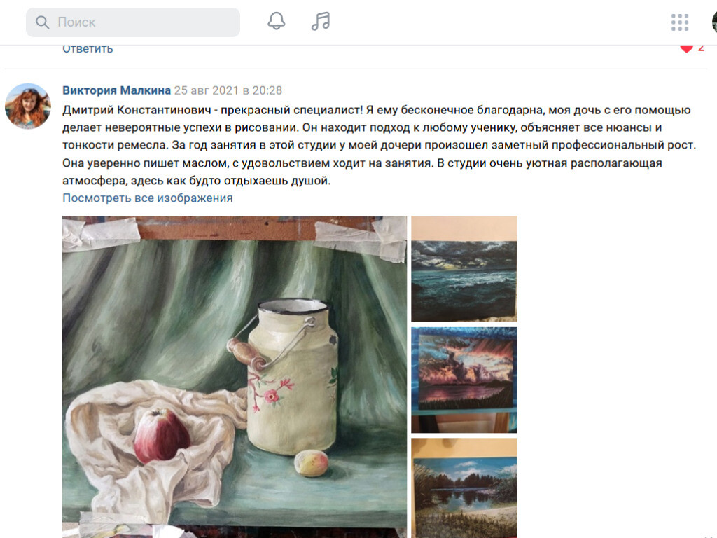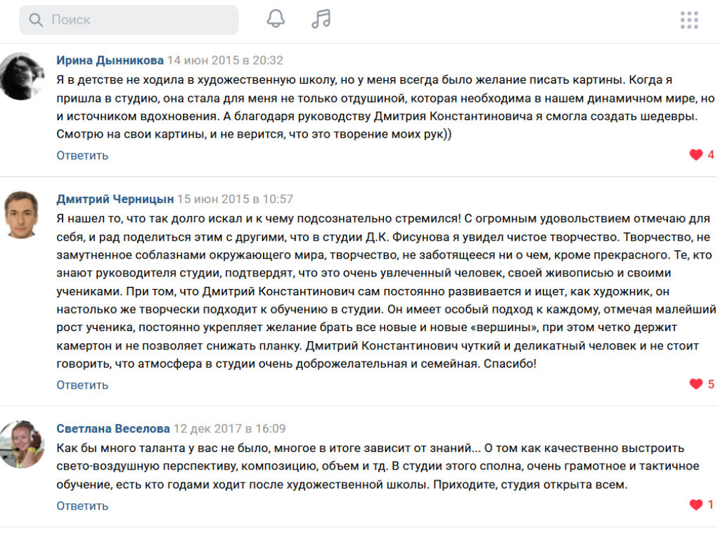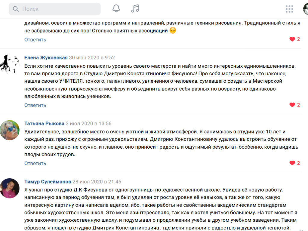 Многие ученики стали победителями различных конкурсов и участниками Всероссийских выставок. Другие продолжают занятия в студии и продают свои работы в галереях.