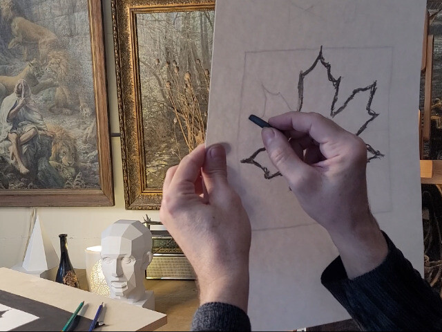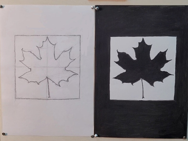 Урок 6. Кленовый лист в размере А3. Линейный рисунок.